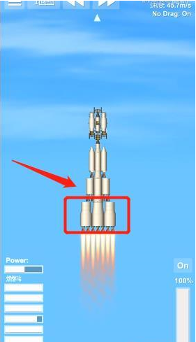 3、点击发动机的位置,启动发动机,点火升空,记得可以用油门杆调节油门的大小。