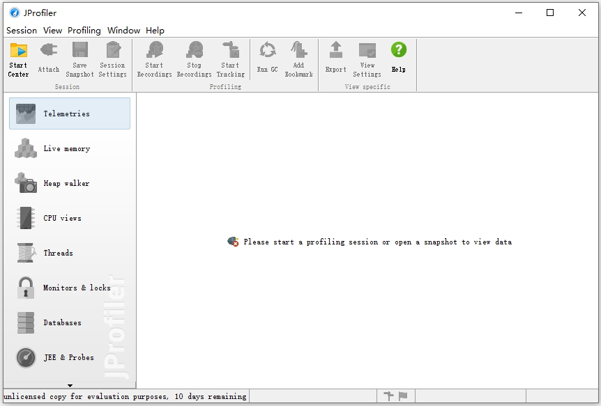 JProfiler只在需要时记录数据。实际上,您可以使用JProfiler代理启动应用程序,并在以后连接JProfilerGUI。当您不记录任何数据时,开销非常小。JProfiler显示您的性能分析设置如何影响性能,并为您提供模板以快速选择常见用例的性能分析设置。