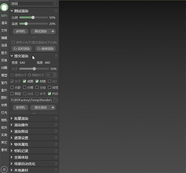 如果你不喜欢这种自动校正,也可以在设置中关闭“渲完自动校正”,但就不能保证您的自动保存的结果是正确的。如果你只想出一张图,又想保存的图像是正确的,最好的解决办法是用LWF模式。即点击RDF的 渲染>>Gamma设置>>一键LWF,就行了。点了一键LWF后,不要再动Gamma,否则就不再是LWF模式了。