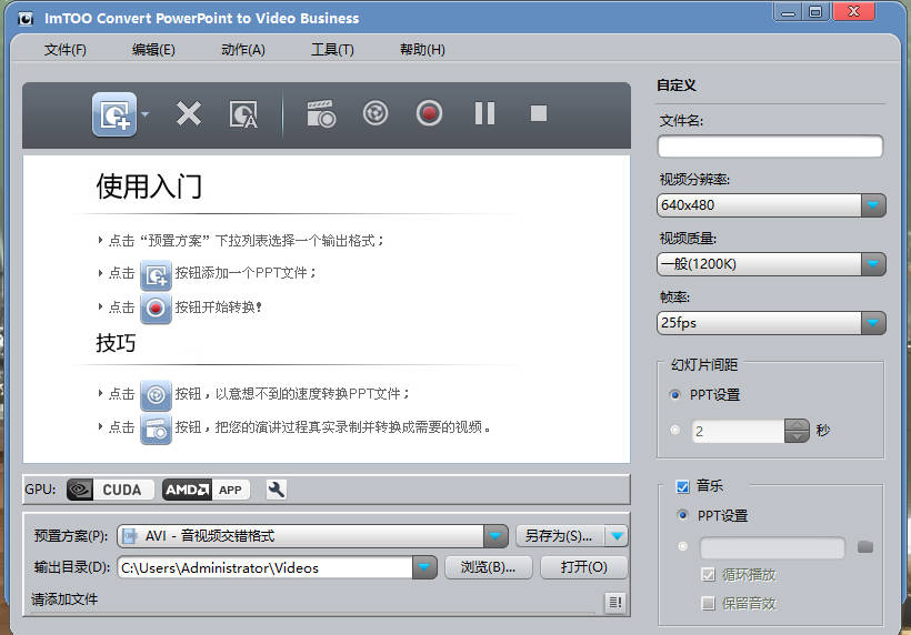 使用文字,徽标和图片为您的PPT视频添加版权; 向您的幻灯片介绍背景音乐(MP3,WMA,WAV)。