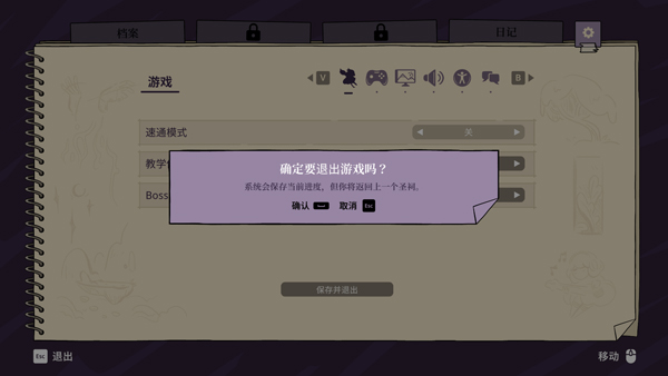 7、最后,当需要保存时,点击ESC键暂停游戏,接着点击游戏,选择保存并退出即可。
