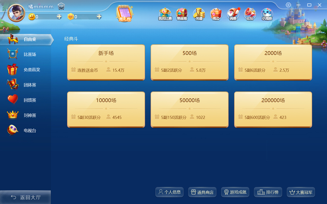2、接着选择玩法模式,这里以经典斗为例,点击新手场;