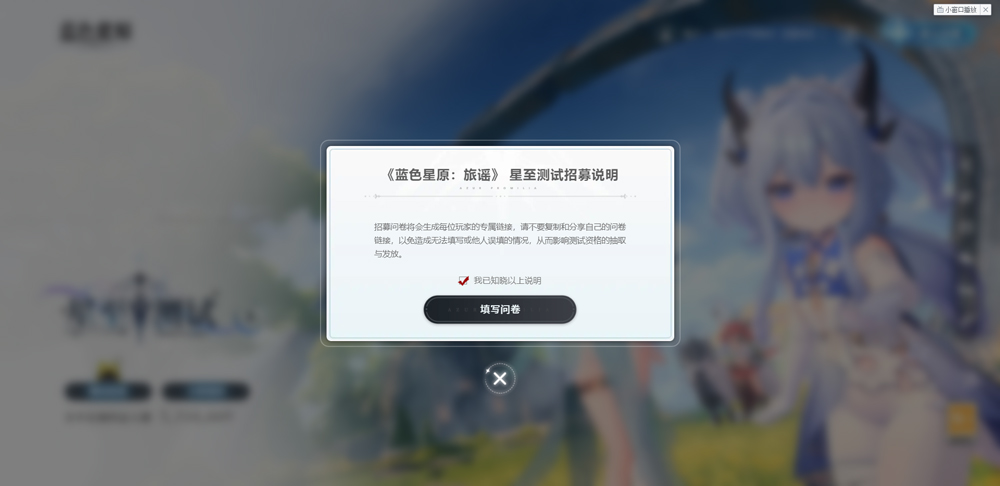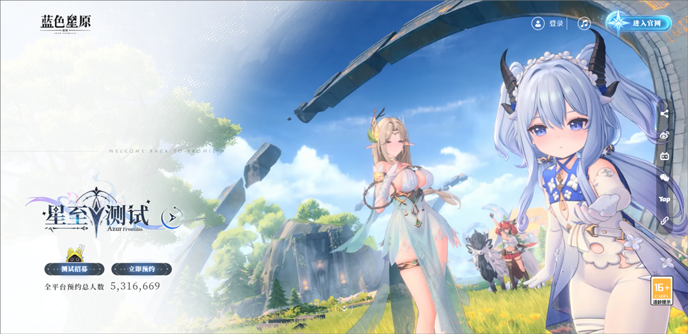 1、打开蓝色星原旅谣官网:https://azurpromilia.manjuu.com/,点击左下方“测试招募”;