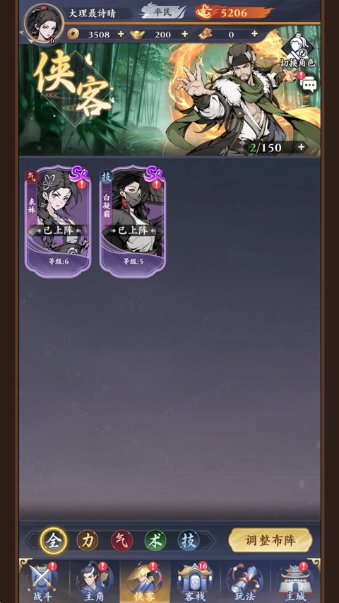 5、以及在客栈招募武林侠客,然后搭配阵容一同战斗。