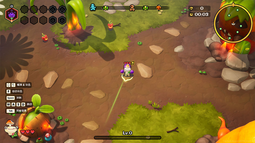 《疯菇突围》是一款以卡通风格为主的弹幕射击生存游戏,背景设定在森林被炎王军队烧毁的危机中。玩家化身“菇军”,用各种武器和技能与敌人对抗,目标是拯救森林并阻止世界毁灭。游戏里有多种滑稽搞笑的菇人角色,每个角色都有独特的技能和战斗风格,比如近战猛攻或远程风筝,玩家可以根据自己的喜好自由组合搭配。