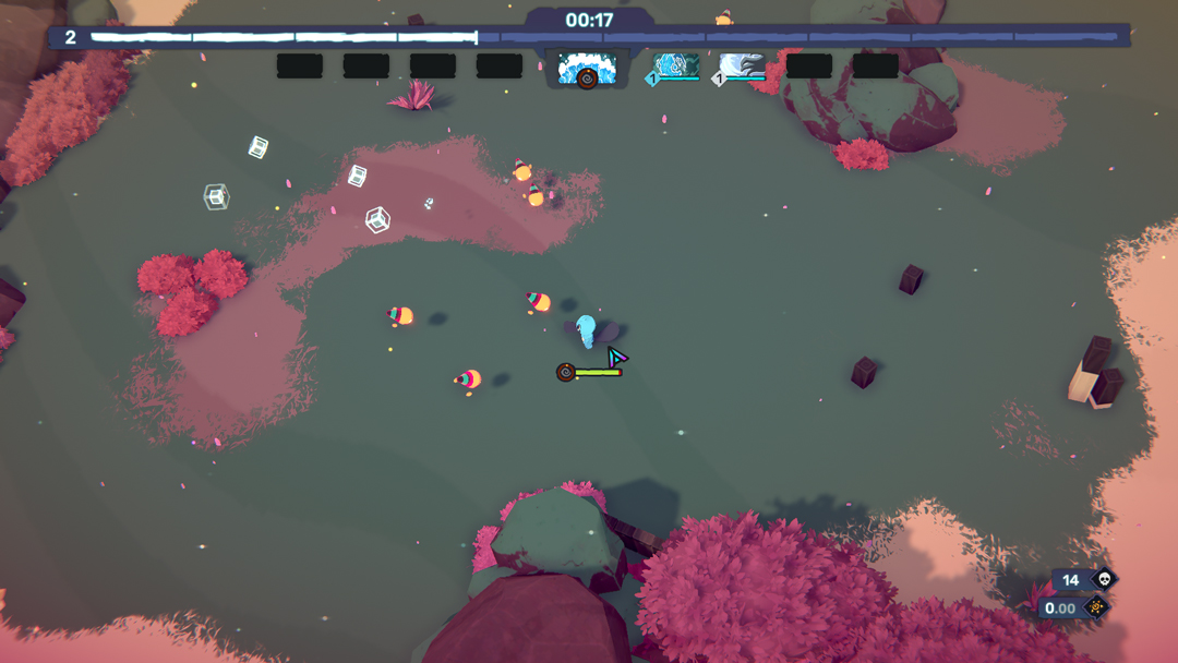 5、进入游戏如图,腾兽会自动攻击,玩家只需操纵腾兽移动躲避敌人,以及拾取掉落的经验格,每次升级还可选取一项强化。