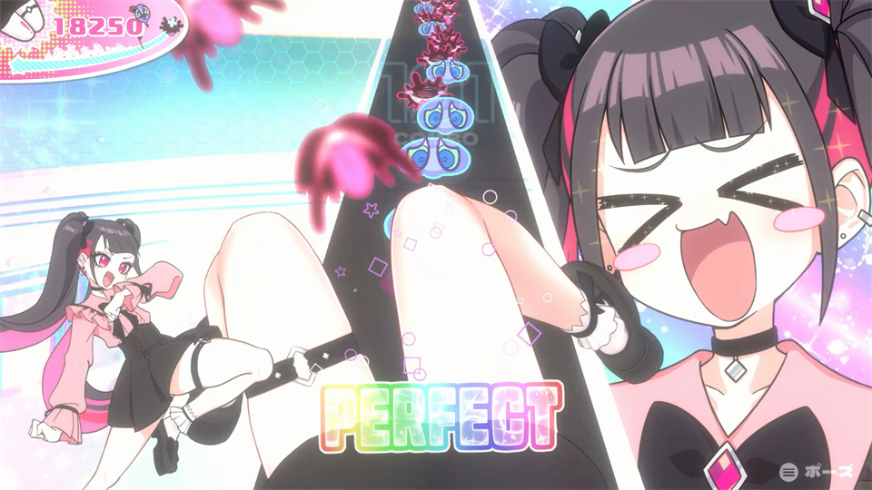 2、伴随节奏从画面深处飞来的,是三种各具特色的目标。用正确的动作精准应对吧!