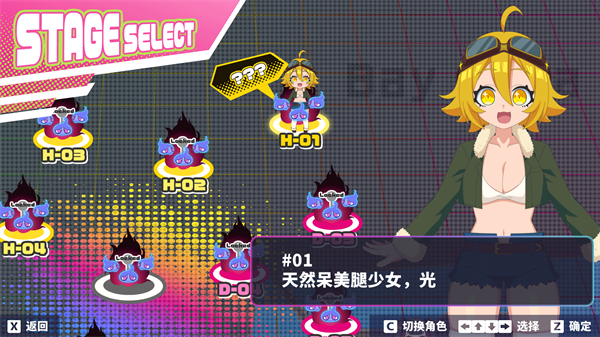3、接着返回主菜单选择演奏模式,按C键选择角色,上下左右方向键选择,X键返回,Z键确定;