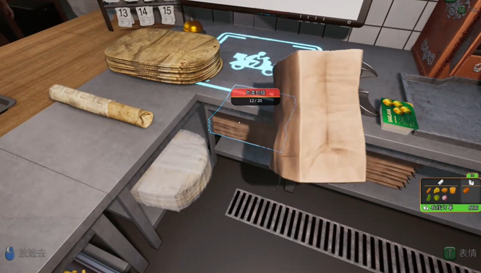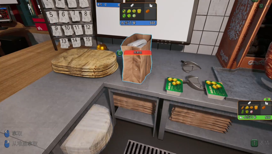 对于新手来说,最实用的功能是接在线订单。进入游戏后,在收银台查看外卖订单,点击接受;然后根据订单制作食物,打包放进外卖袋,最后长按袋子完成配送。听起来简单,但随着订单量增加,如何高效管理店铺就成了考验!