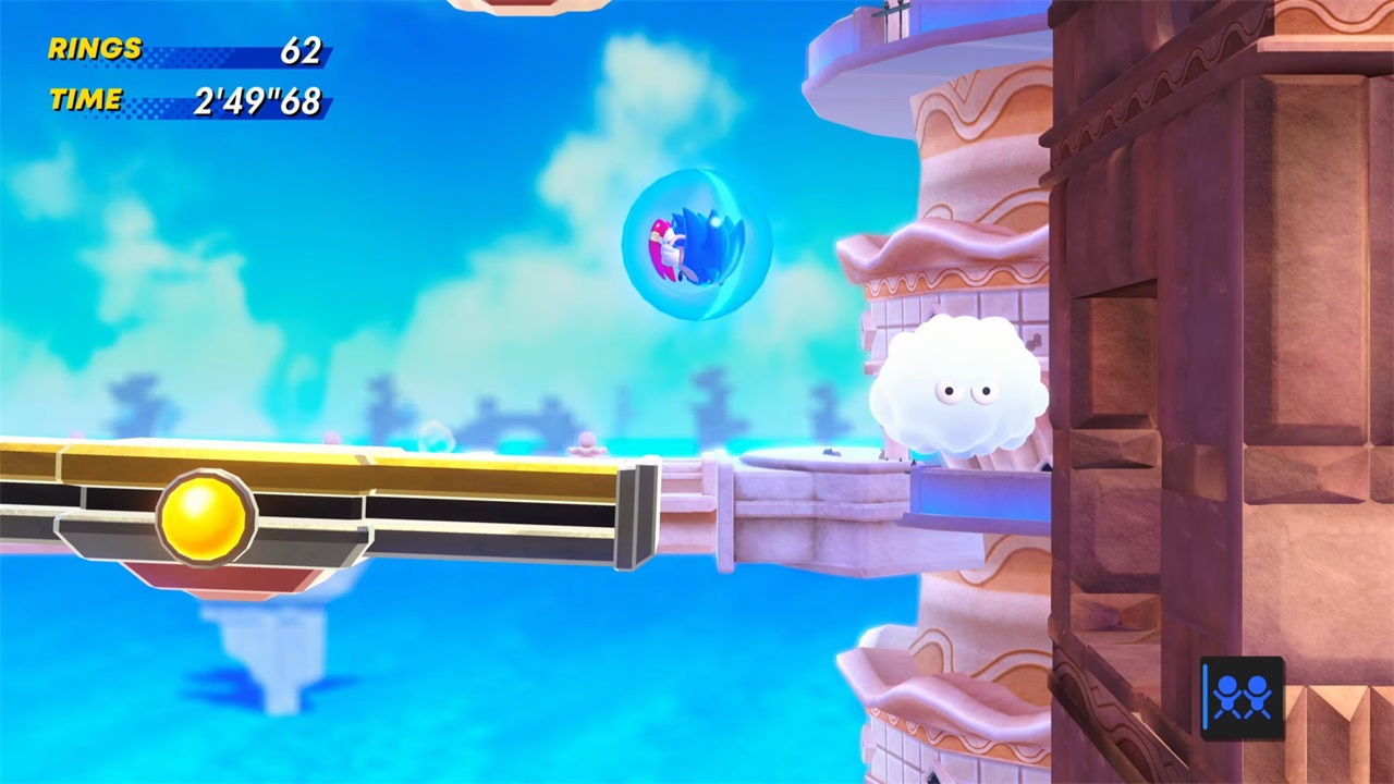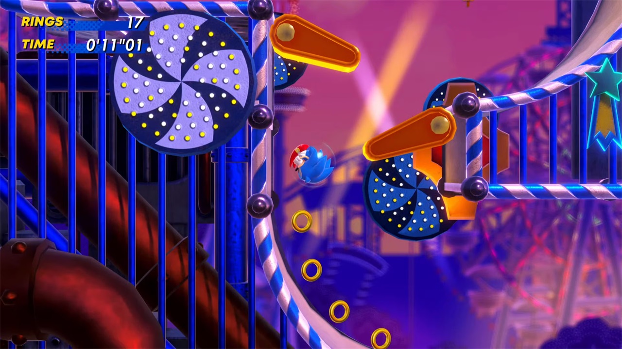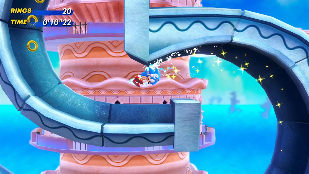 利用“子弹能量”,将自己弹射回戒指附近,最终穿过戒指,从而开启“追逐混沌翡翠”迷你游戏。该游戏的玩法与其他迷你游戏相同(除了那个令人讨厌的“泻湖城”关卡)。