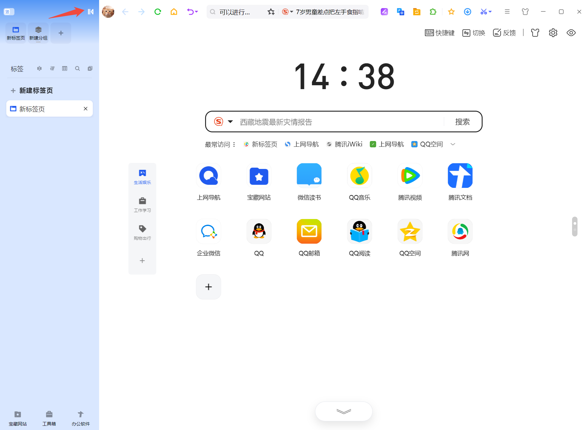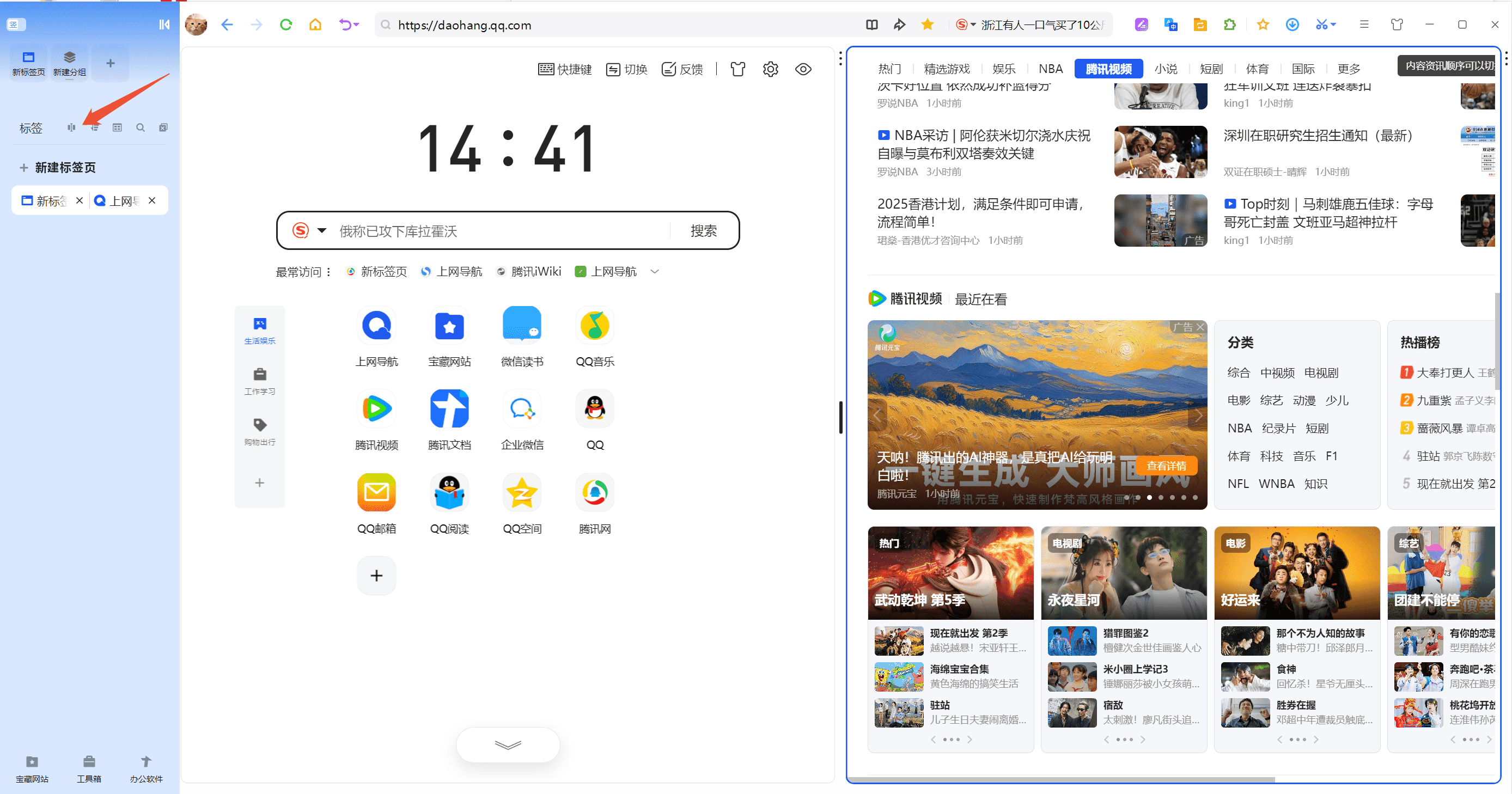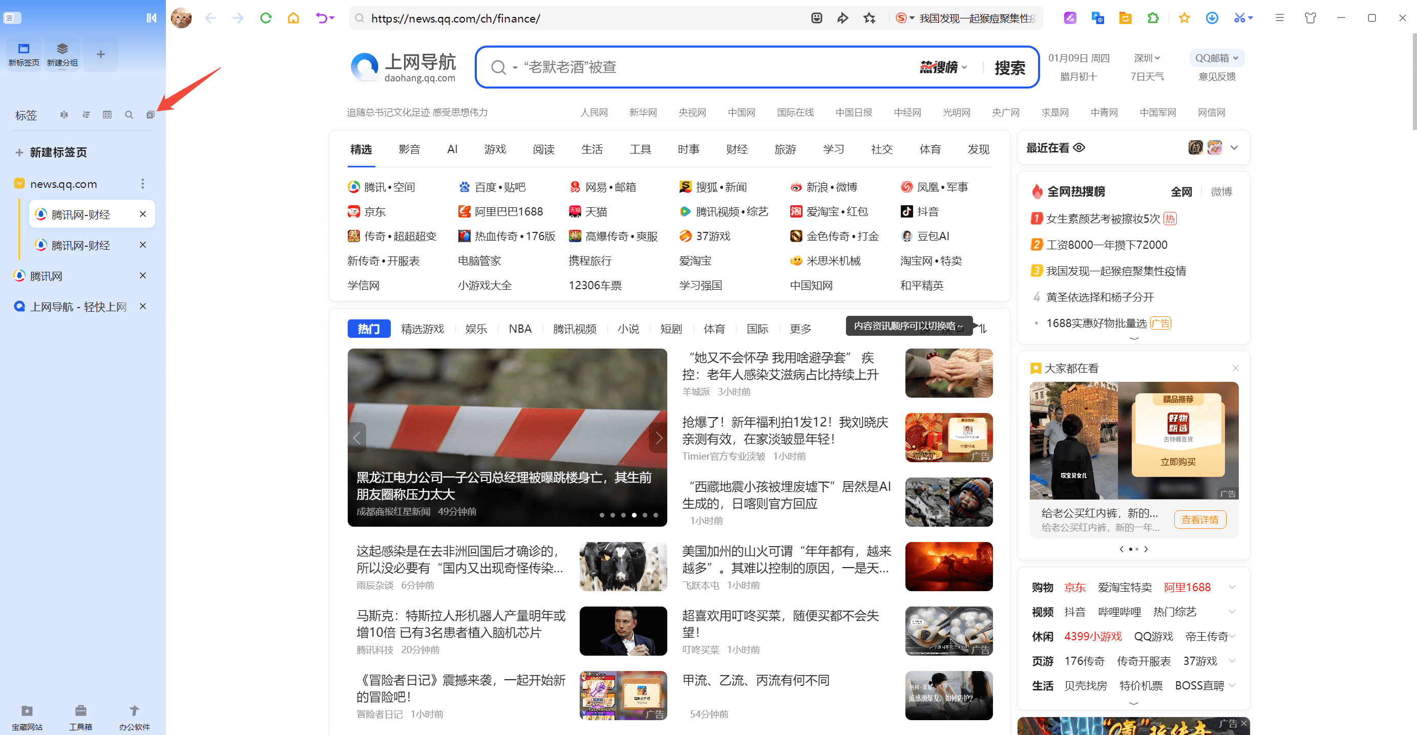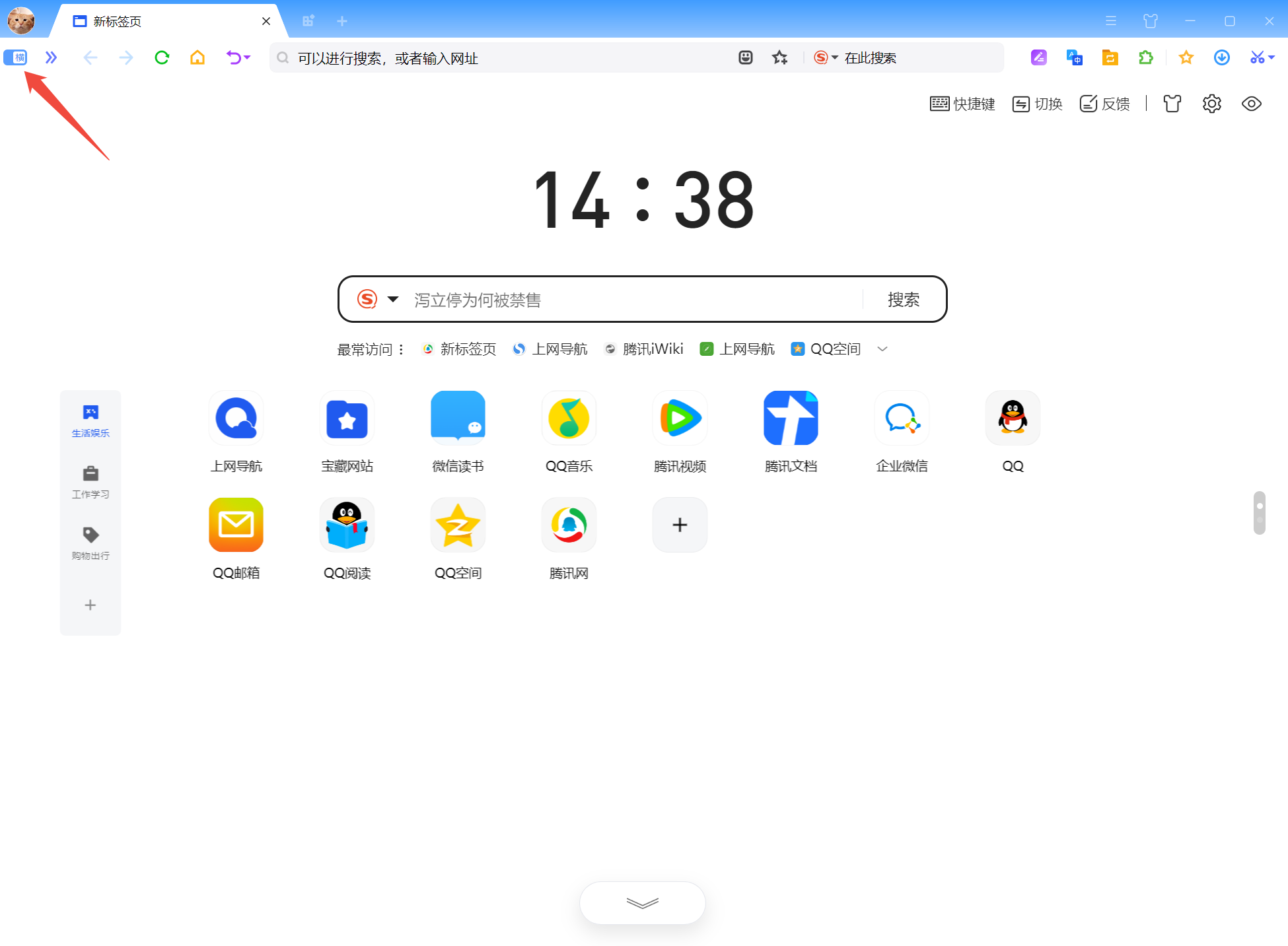 如果想完全隐藏侧边栏,可使用快捷键「Alt」+「Q」进入隐藏侧边栏模式,即可完全隐藏侧边栏进入沉浸网页浏览模式。