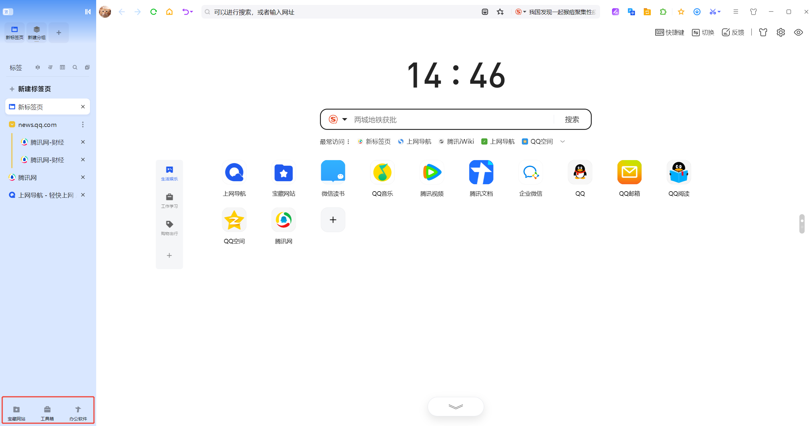 此外,竖版工作台还为大家提供了宝藏网站、工具箱、办公软件(微信、腾讯文档、腾讯会议)的快速访问入口,超多实用网址、工具等你来体验。