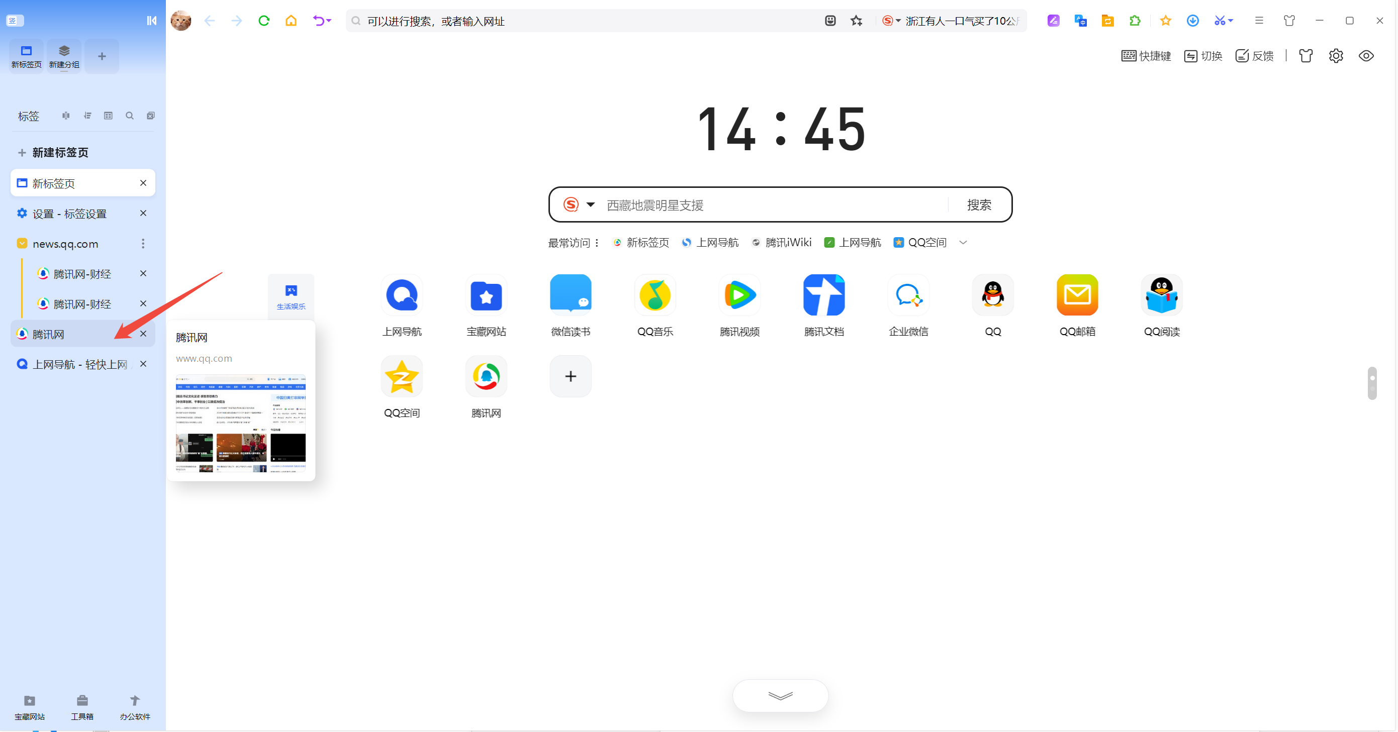 7)标签页小窗预览:当鼠标hover到标签页时,即可出现网页预览小窗,寻找网页更轻松。