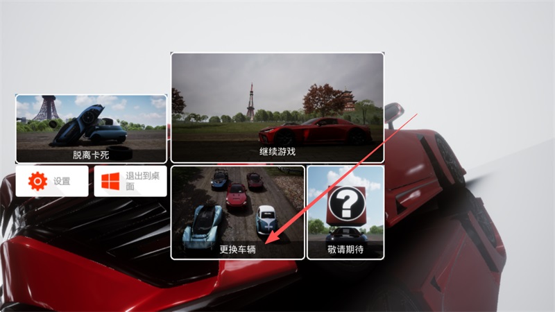 行驶过程中点击屏幕上方的暂停按键,即可打开菜单更换车辆。