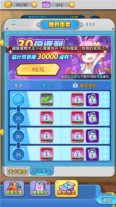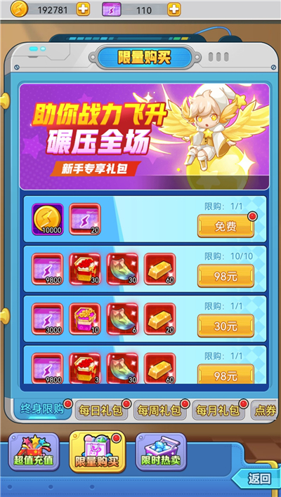 3、点击最下面的【限时热卖】里面的第一个【等级基金】,每升五级就可以领取大量的点卷奖励。