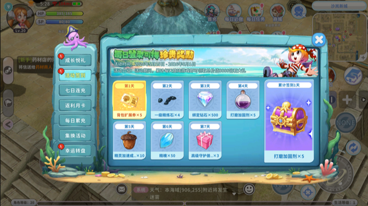 每日登录游戏即可领取签到奖励,累计可获得总价值8888钻石的丰厚好礼!其中第1、3、5、7天还可领取额外的累计登录奖励,高级守护兽礼盒、背包扩展券等你来拿!