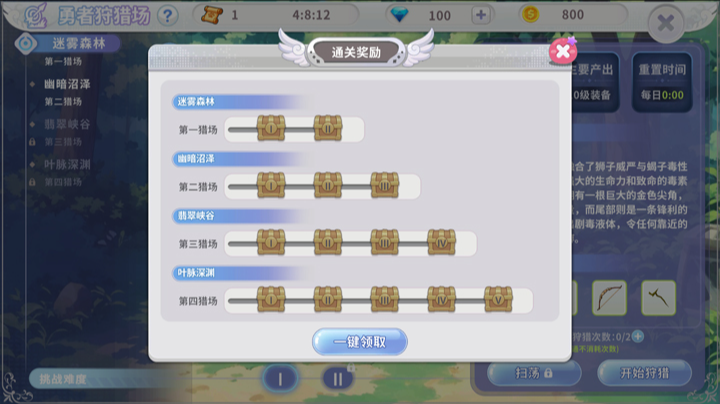 参与狩猎挑战,通关对应区域后即可在主界面领取一次性宝箱奖励,内含海量绑钻、精魄、多阶精炼石。技术换资源,越强拿越多!