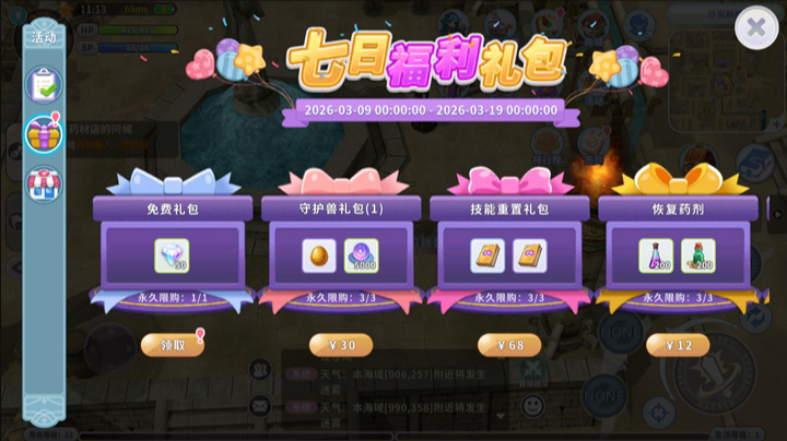 同时,活动界面将开放多种限时礼包供选购,并每日刷新。