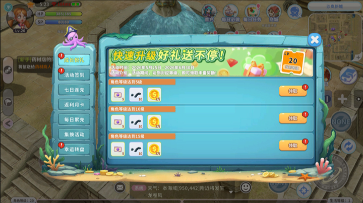 角色达到5级后即可开始领取等级奖励,每提升5级可领取一次,包含扭蛋券、金币、精炼石等实用资源,可领取至70级为止。等级越高,奖励越厚,助你轻松起航!