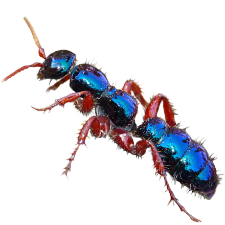 分布于澳大利亚的南部与东南部地区,是澳大利亚地区的土著生物,虽然名字是蚂蚁但实际上属于一种被称为花黄蜂的大型孤立寄生蜂,因为酷似蚂蚁的外形而总是被误解为是蚂蚁的一种,体型很大,甚至可以达到25mm,雌性迷幻蚁会使用毒针来毒杀猎物,随后在猎物的尸体中产卵,迷幻蚁的毒液异常强烈,被刺中会有强烈的灼烧感与胀痛感,甚至会引发过敏反应从而危及生命。