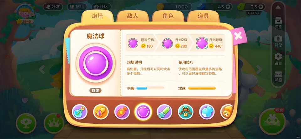 用法:一级二级基本没用,别浪费金币早升!三级后战斗力飙升,价格还便宜,短时间内清掉一波群怪超给力。