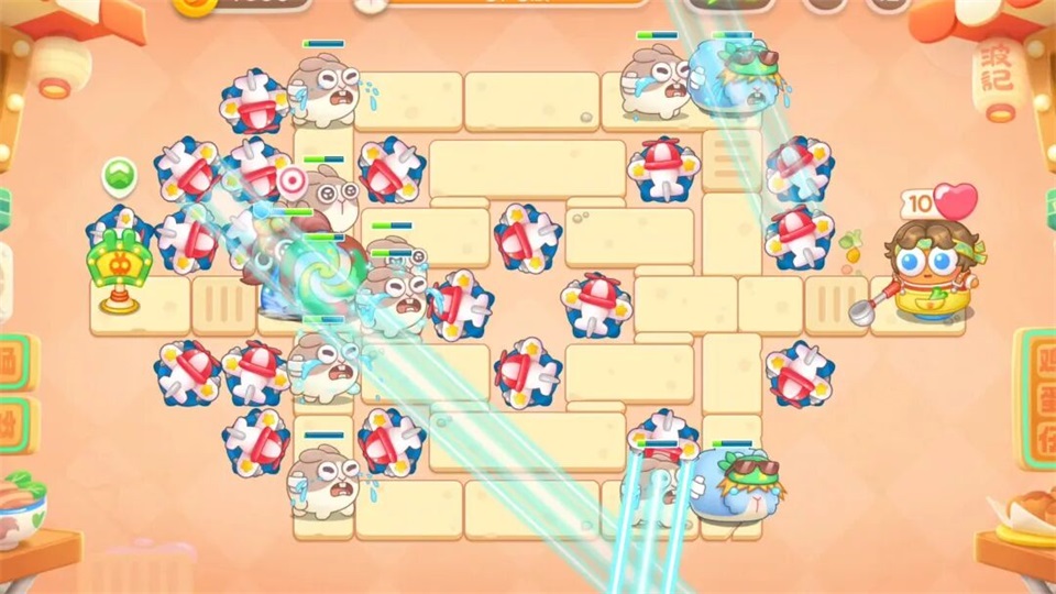 这是最关键的资源技巧!如果本轮敌人已经稳赢,千万别让它们死太快,特意留最后一只兔子,趁它慢悠悠前进时,让所有炮塔转头清建筑赚金币。经常为了保住最后一只兔子 “保驾护航”:它安全时让炮塔疯狂拆楼,它快到危险区域时,就让炮塔停火,等它走远了再继续拆,直到它死在终点前,才算物尽其用~