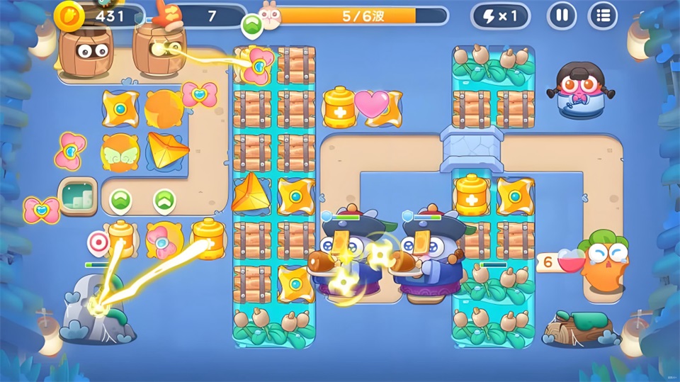 首轮放置炮塔时,就要明确分工:一部分专门打怪(比如火箭、火瓶塔),另一部分专门拆建筑(比如多重箭、船锚塔)。别让所有炮塔都盯着怪打,否则建筑清不完,下一轮金币不够,只会越玩越难。