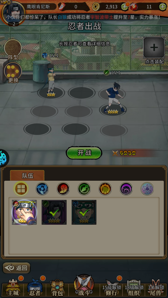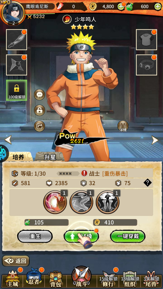 4、新获得的忍者,可以先对其进行升级,使其快速形成战斗力。