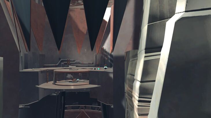 接着,回到升降平台,把它一直带到最高。爬上你刚放的梯子,进入建筑。你会发现自己在这里: