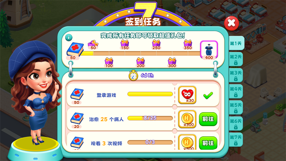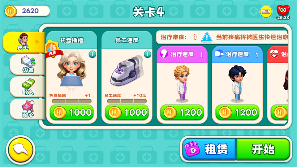 只需金币即可轻松升级技能、招募新人才、培养医务人员以及维护医疗设备。玩家可以明确规划游戏货币的使用,让你的医院运营更加顺畅!