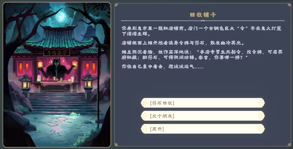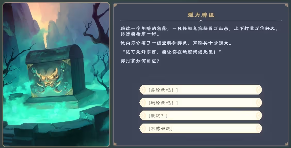 选择【卖给我吧!】可以花100金币,随机获得2宝牌,触发一次幻灵台,可以选择附两个牌灵;