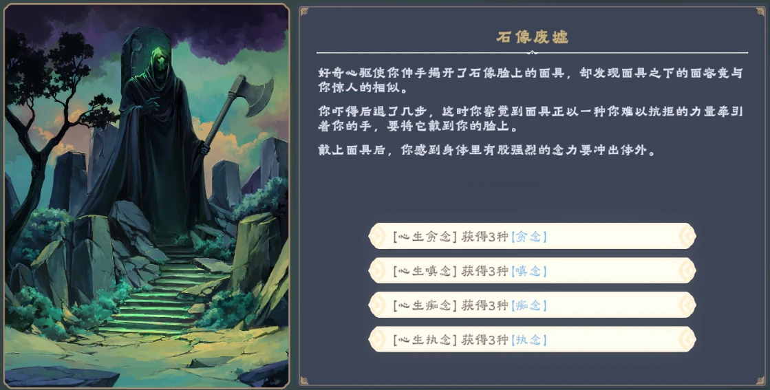 ※选择【降下诅咒】随机失去1个诅咒遗物,获得50金币。
