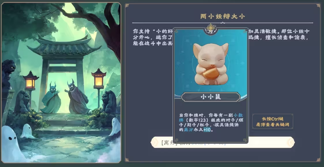 ※另一种思路是利用主动技能触发吃牌时的强制弃牌触发饥饿小妖(蓝)和穷奇(橙),达到快速养成的目的。