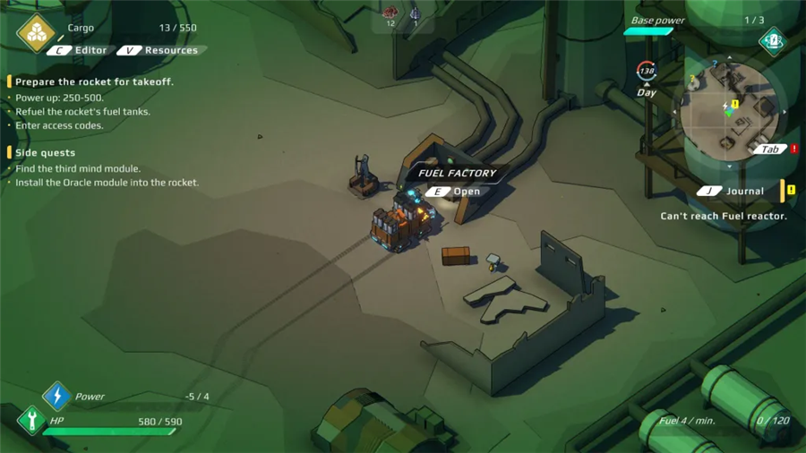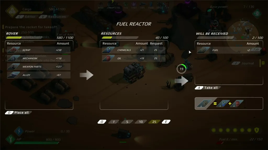 1、等你交付了神谕者时,合金的产量应该很稳定。现在,你需要开始生产燃料。大多数高级武器消耗大量能量,你需要安装发电机才能使用这些武器。