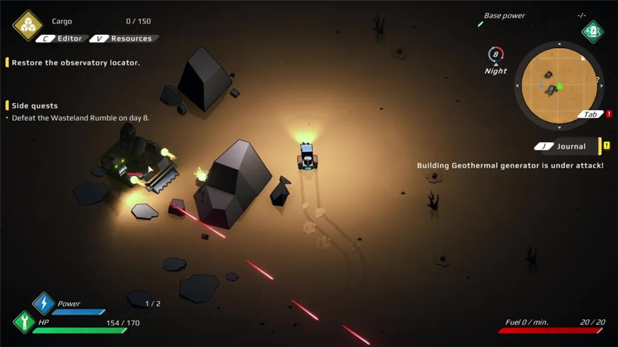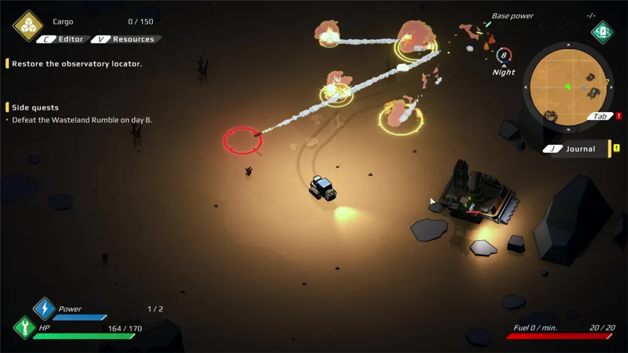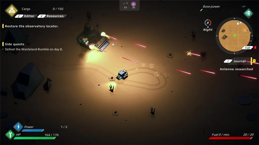 在电脑版中,资源是生存的关键,玩家需要派遣漫游者采集物资,并用这些资源制造武器装备、建设防御设施和生产建筑。同时,还要指挥战车和机械部队与敌人作战,应对沙尘暴和辐射等自然灾害。击败荒原大乱斗需要灵活的战术,比如利用地形躲避导弹、侧向移动避开炮塔攻击,以及合理安排巡逻车的牺牲来削弱敌方火力。