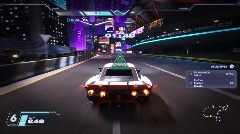 游戏中可供选择的众多赛车手绝非仅仅是装饰。每位角色在速度、漂移操控性,甚至“同步”和“熵”计量表的初始值方面都表现各异。作为一名漂移技巧尚未达到理想水平的人,Hina和Noboru一直是我首选的角色。