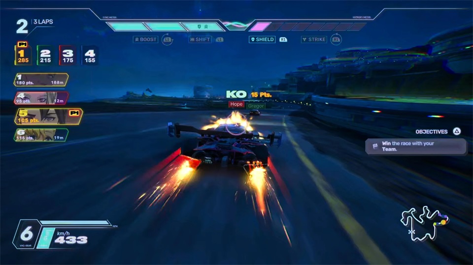 得益于这种技术,赛车不再只是竞速,还能交锋!一而再、再而三地将赛车推向极限。在Boost、Strike与Shield之间灵活切换,保持领先地位,以惊人的速度爆发和精准的打击,将对手挤出赛道。一旦Overdrive发动,便是全速狂飙的疯狂时刻:毫不留情,绝不刹车,前方谁也别想阻挡。掌握Echo之力,你将成为真正的Screamer!