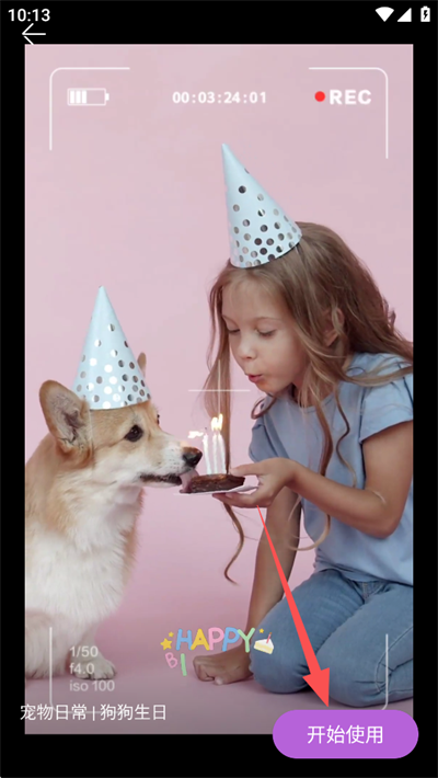2、在顶部分类栏(如宠物、运动、生日等)中选择对应场景,找到喜欢的模板(如"宠物日常"),点击模板下方的使用按钮;