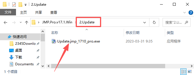 8、双击运行【2.Update】文件夹下的【Update.jmp_1710_pro.exe】更新程序。
