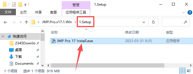 1、双击运行【1.Setup】文件夹下的【JMP Pro 17 Install.exe】安装程序。