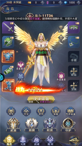 1、佩戴武器装备可快速提升战力。