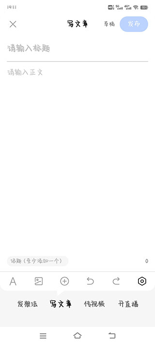 4、点击底部菜单栏中心+号,可以发布作品,帖子文章,还可以开直播哦!