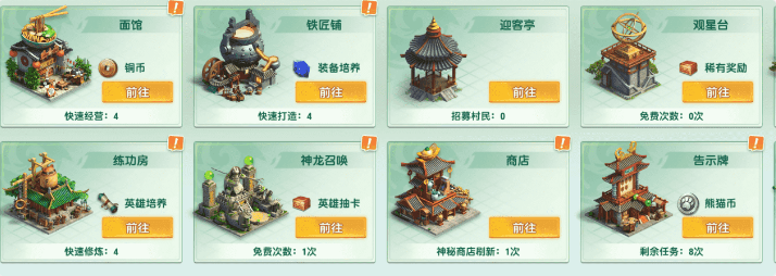1.铁匠铺:可以生产强化石,强化装备,提高战力