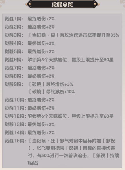 对前排3个目标造成攻击力140%物理伤害,并施加威慑,携带威慑目标对张飞造成的伤害降低70%(技能减伤),持续2回合。