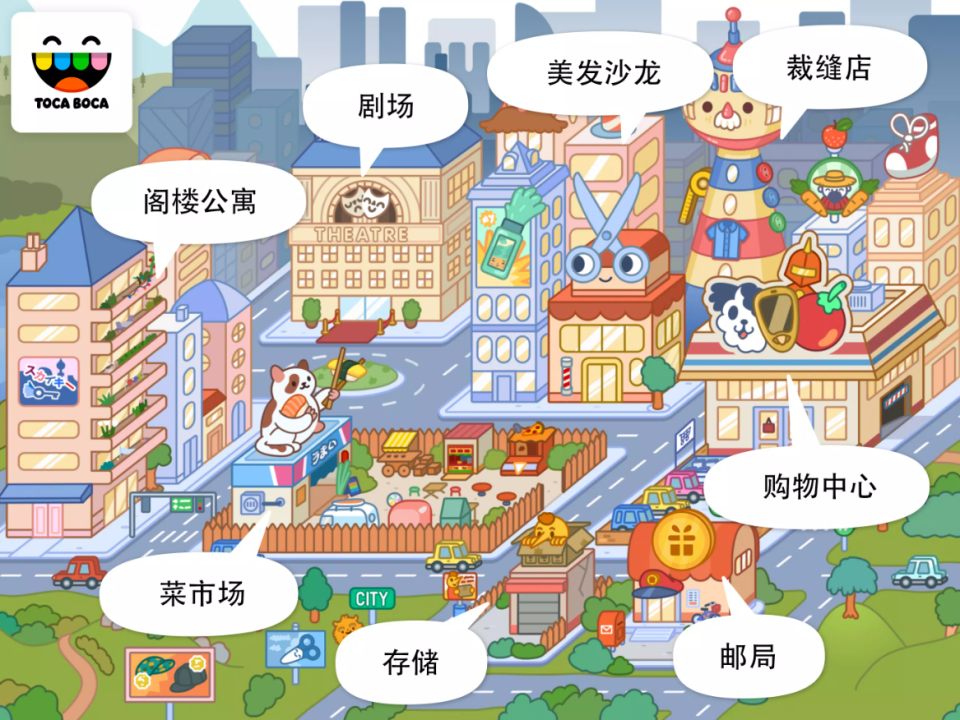 托卡生活都市(Toca Life: City)是一款充满欢乐的模拟小镇游戏,里面有很多好玩的地方可以探索,比如阁楼公寓、购物中心、美发沙龙、美食公园、剧院和裁缝店。每个地方都有不同的活动,你可以买东西、吃东西、染头发,甚至还能邀请朋友来家里玩。
