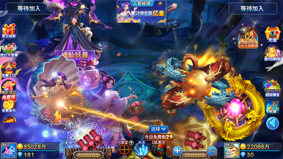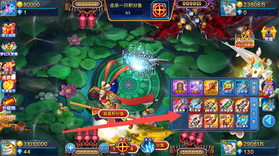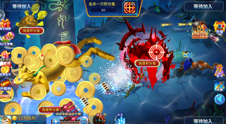提升捕鱼成功率的方法也超多哦!首先升级你的炮台倍率,这样打高级鱼的成功率会大大提高。然后还能用各种道具,比如冰冻鱼群、锁定特定鱼类,甚至有激光武器可以一键秒杀大鱼。另外,获取强力的“炮灵”也能让你变得更厉害,不同炮灵有不同的技能,战斗起来特别有趣。