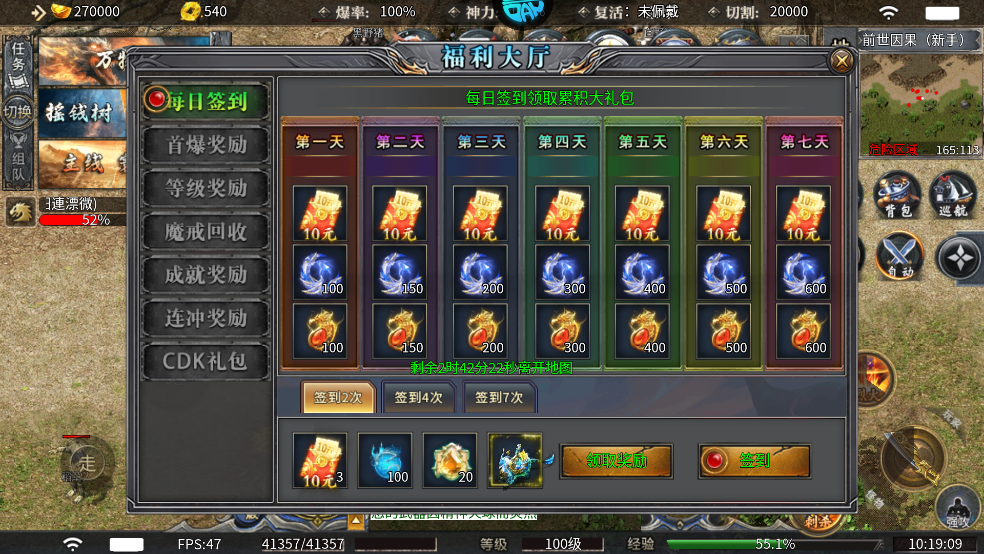 3、每日打怪在线就赠送充值积分,无需花一毛钱!