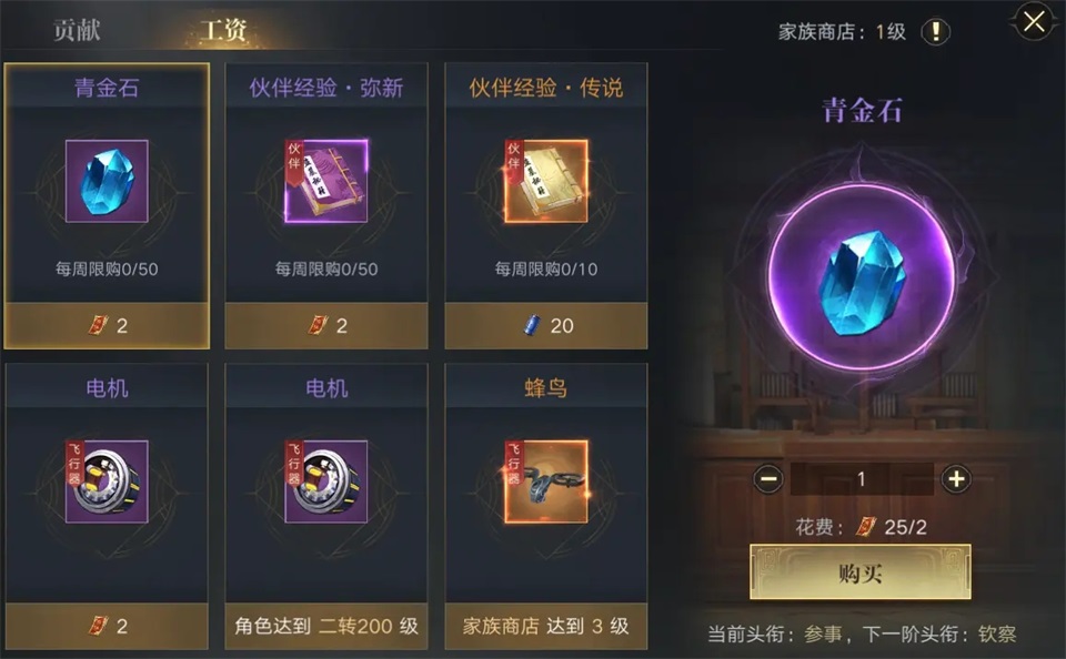 在家族中捐献蓝钻是快速获取声望的方式。