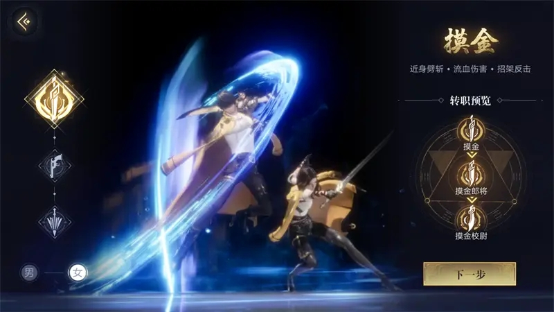 摸金职业以近战攻击为主,转职后分为强攻和守御两个方向。强攻系强调连续输出和吸血能力,适合喜欢主动出击的玩家;守御系则注重防御反击,适合稳健风格的玩家。游戏还提供了丰富的技能选择,让玩家可以根据自己的喜好打造独特的角色。