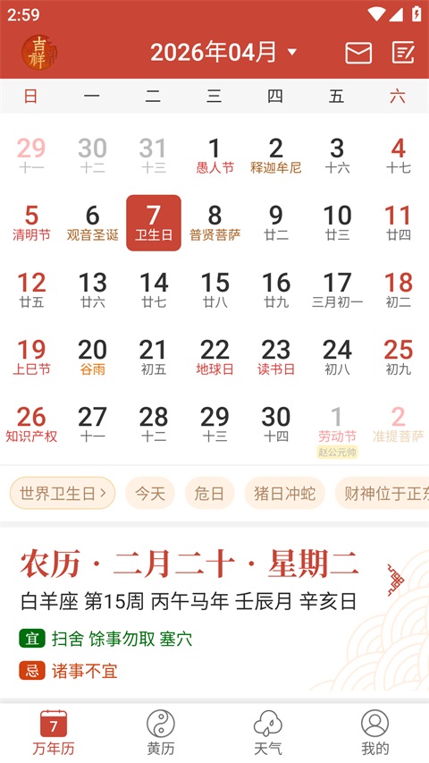 3、经典万年历界面,支持公历与农历转换,方便您查看二十四节气、重要节日、传统节日等等;